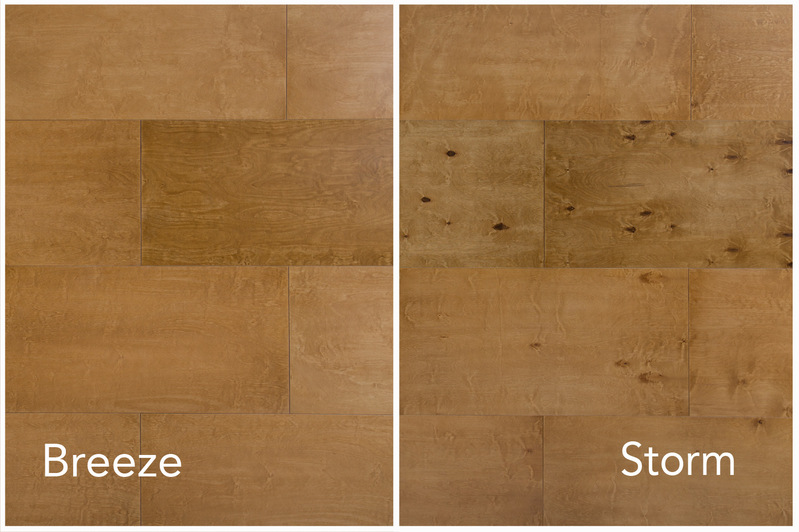Pakkumisel on nii B/BB kvaliteediga toormaterjalist valmistatud Breeze paneelid kui ka WG/WG kvaliteediga toormaterjalist valmistatud Storm paneelid. Seinapaneelid on lihvitud, helepruuniks peitsitud ning seejärel lakitud.