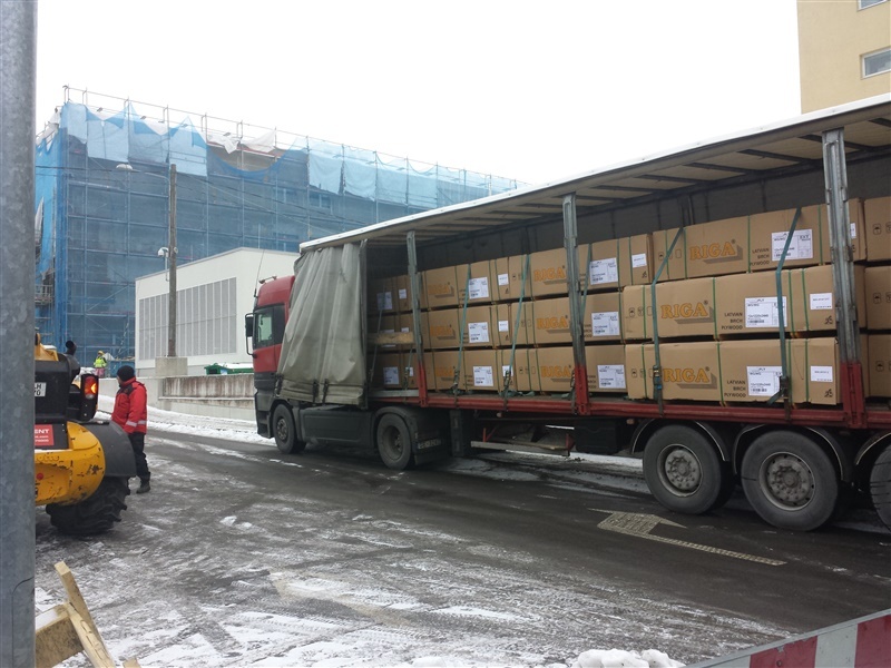 Pildil Tallinnasse PERH'i objektile jõudnud veoauto koorma jagu vineeri